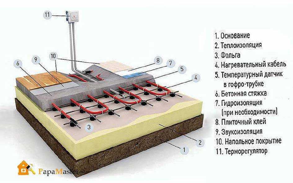 Важно! При использовании кабельных матов стяжка необязательна и прямо на маты можно наносить клей для плитки