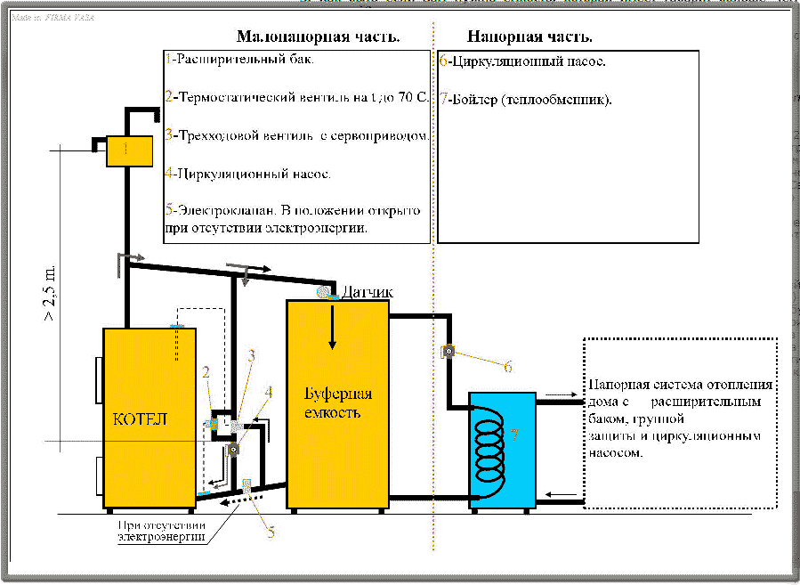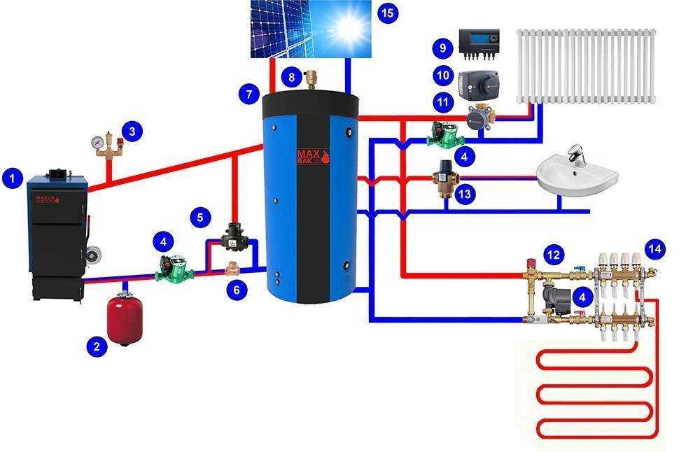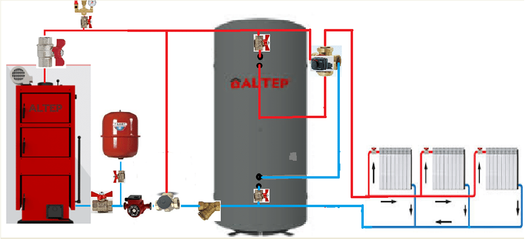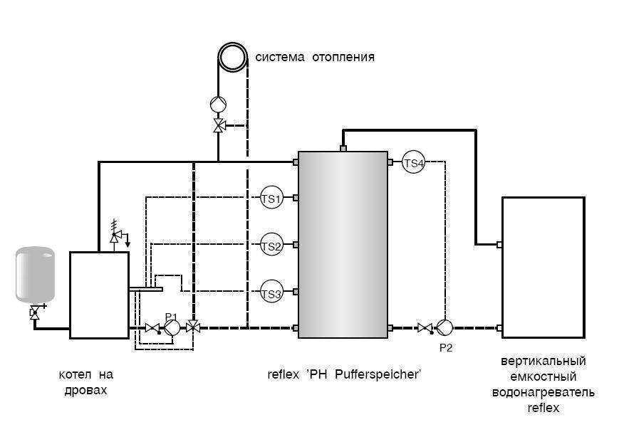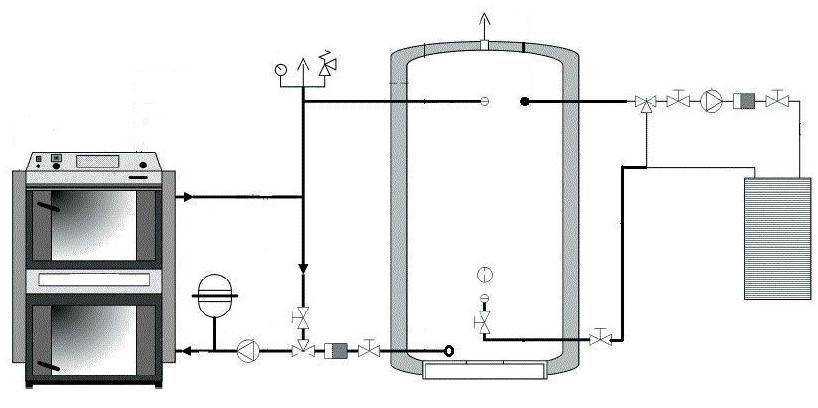 Схема подключения теплоаккумулятора к твердотопливному котлу