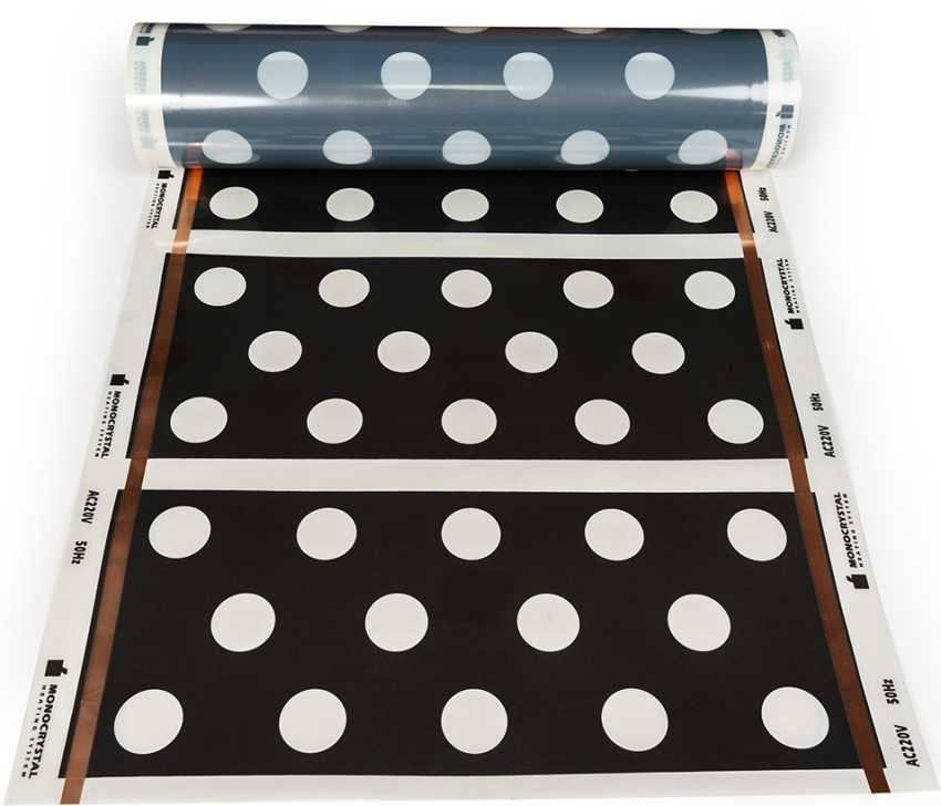 Эксплуатационный срок ИК пленки от производителя Monocrystal составляет 10 лет. Модельный ряд включает в себя следующие разновидности: линейная, перфорированная, сплошная. Перфорация организовывается для совместимости с плиточным напольным покрытием. Пленочные теплые полы под плитку пользуются широкой популярностью у покупателей.